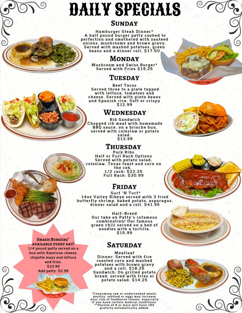 Please ask our friendly staff about the Daily and Weekly Specials